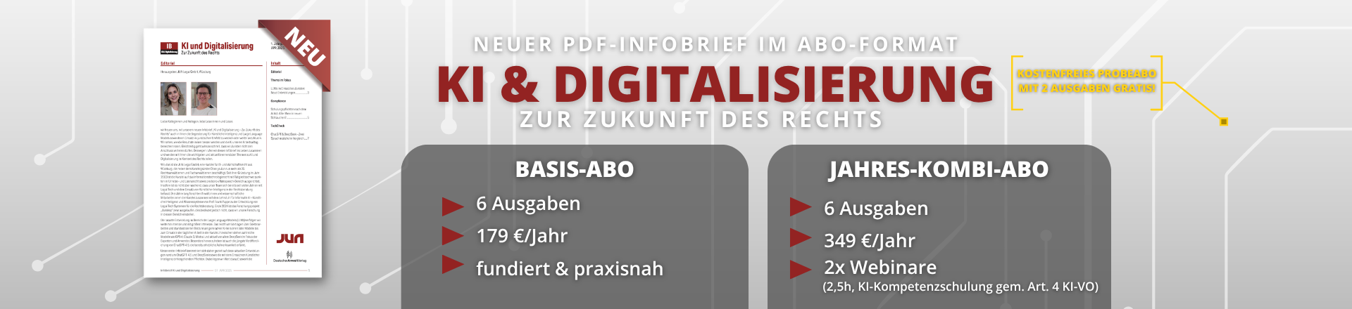 Sichern Sie sich mit dem Kombi-Abo zusätzlich zwei interaktive KI-Webinare (inkl. Pflichtschulung gem. Art. 4 KI-VO) für den direkten Experten-Austausch.